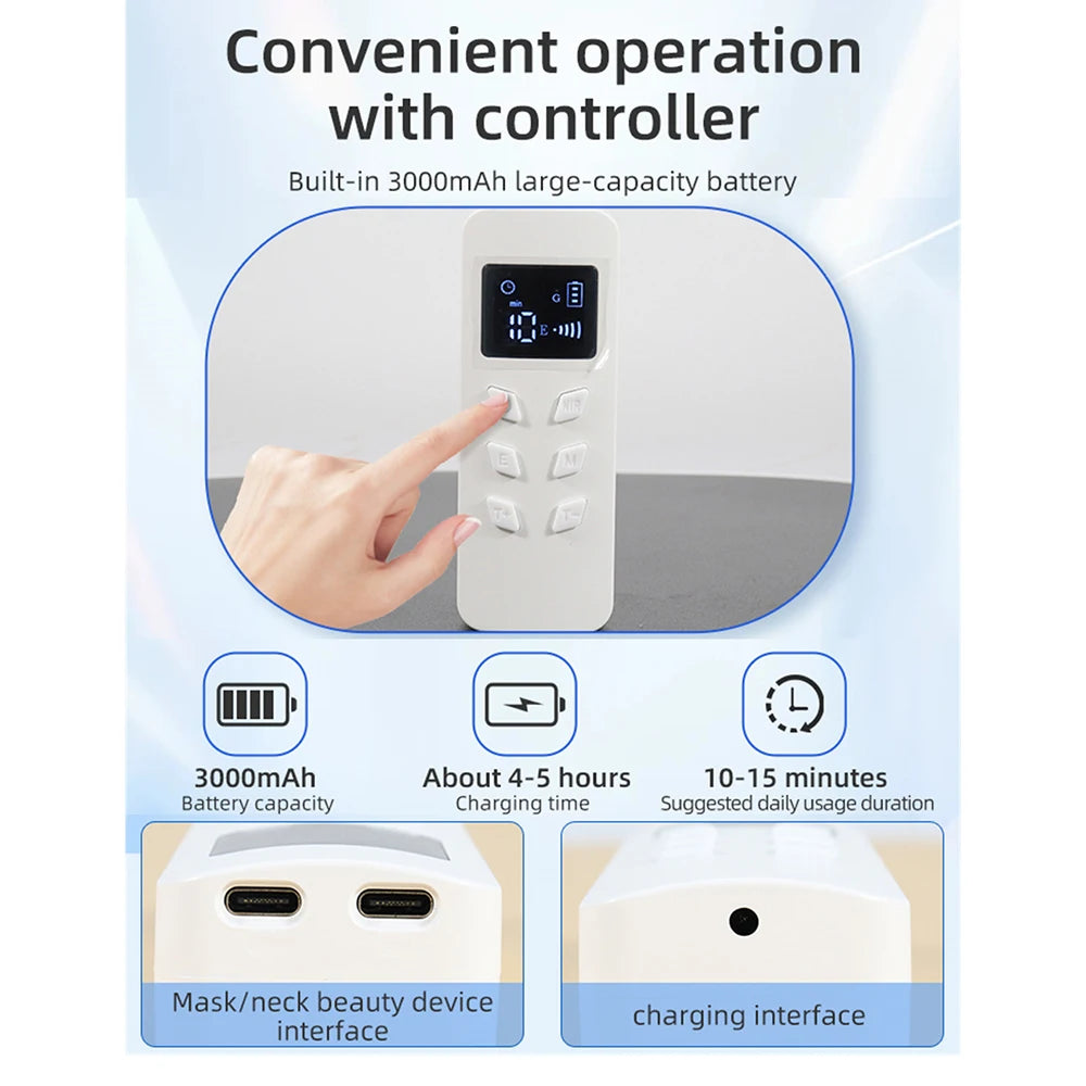 Red and near-infrared lights penetrate deep into the skin to stimulate collagen production, reduce fine lines, and enhance skin firmness for a more youthful look.