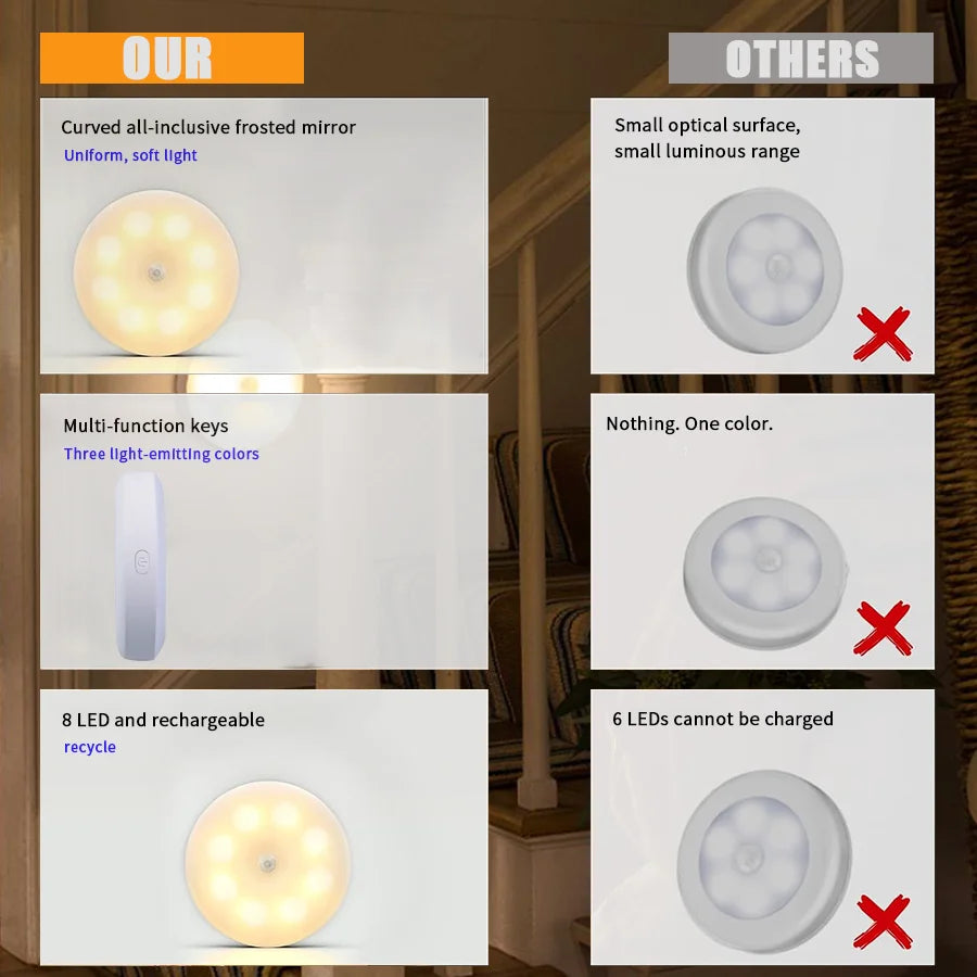 Designed for convenience and style, this compact light is USB rechargeable, energy-efficient, and perfect for night use without disturbing your sleep. No switches, no wiring — just smart lighting that works for you.